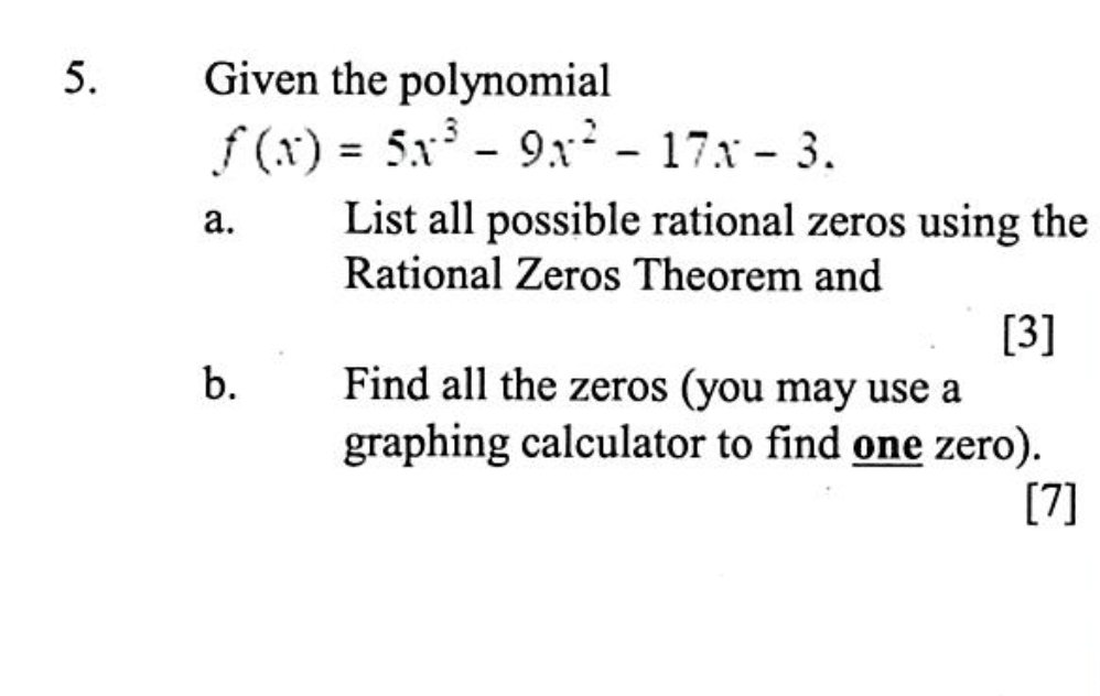 Web The Rational Root Theorem states that if a polynomial has integer coefficients then every rational zero of f x has the form pq where p is a factor of the trailing constant a0 and q. Web Using Rational Zeros Theorem to Find All Zeros of a Polynomial Step 1. 1 are specified to be integers then rational roots must have a numerator which is a factor of and a denominator which.